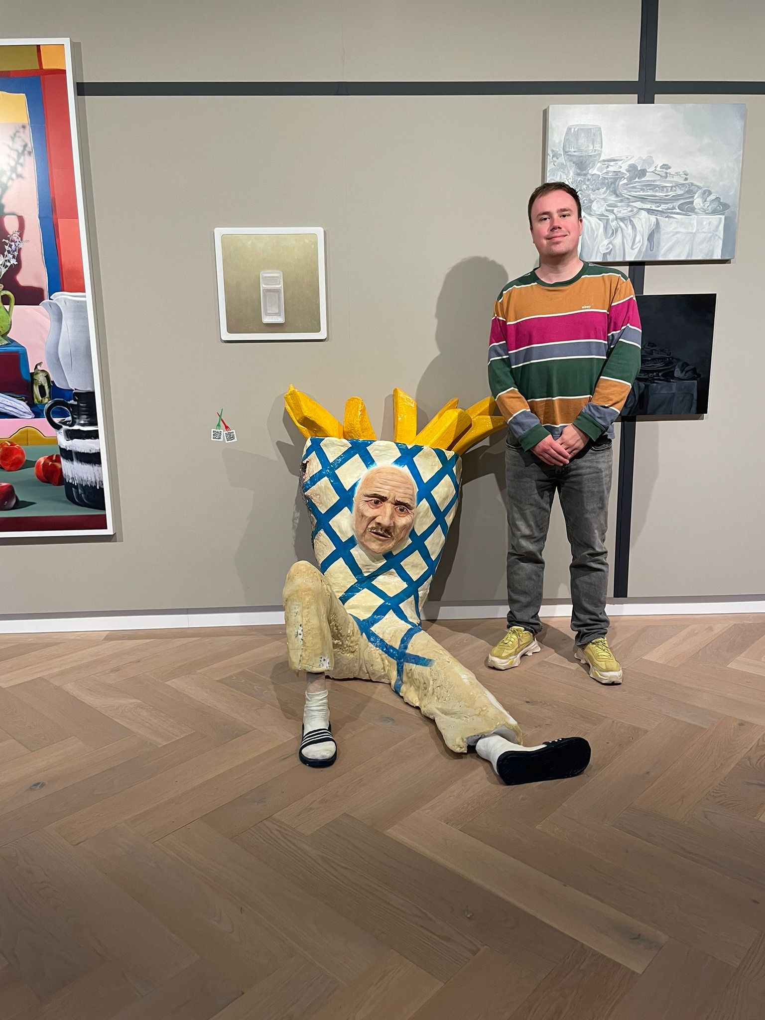 De Snackspert moet al heel wat Jan Patatten gezien hebben. Deze versie in het LAM museum is anders. Kunstenaar Sietske Zandbergen raakte gefascineerd door het friet-etende-patatmannetje dat als stoepbord en lokker gebruikt wordt bij snackbars. Hoe kan zo’n gek en vaak kapot beeld je eetlust opwekken? Ze maakte een over-the-top, uitgebluste versie.